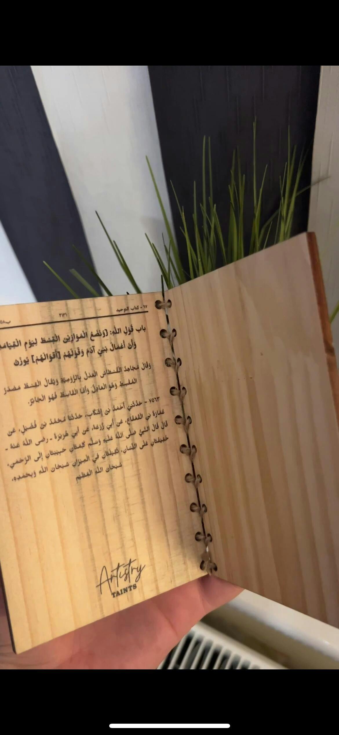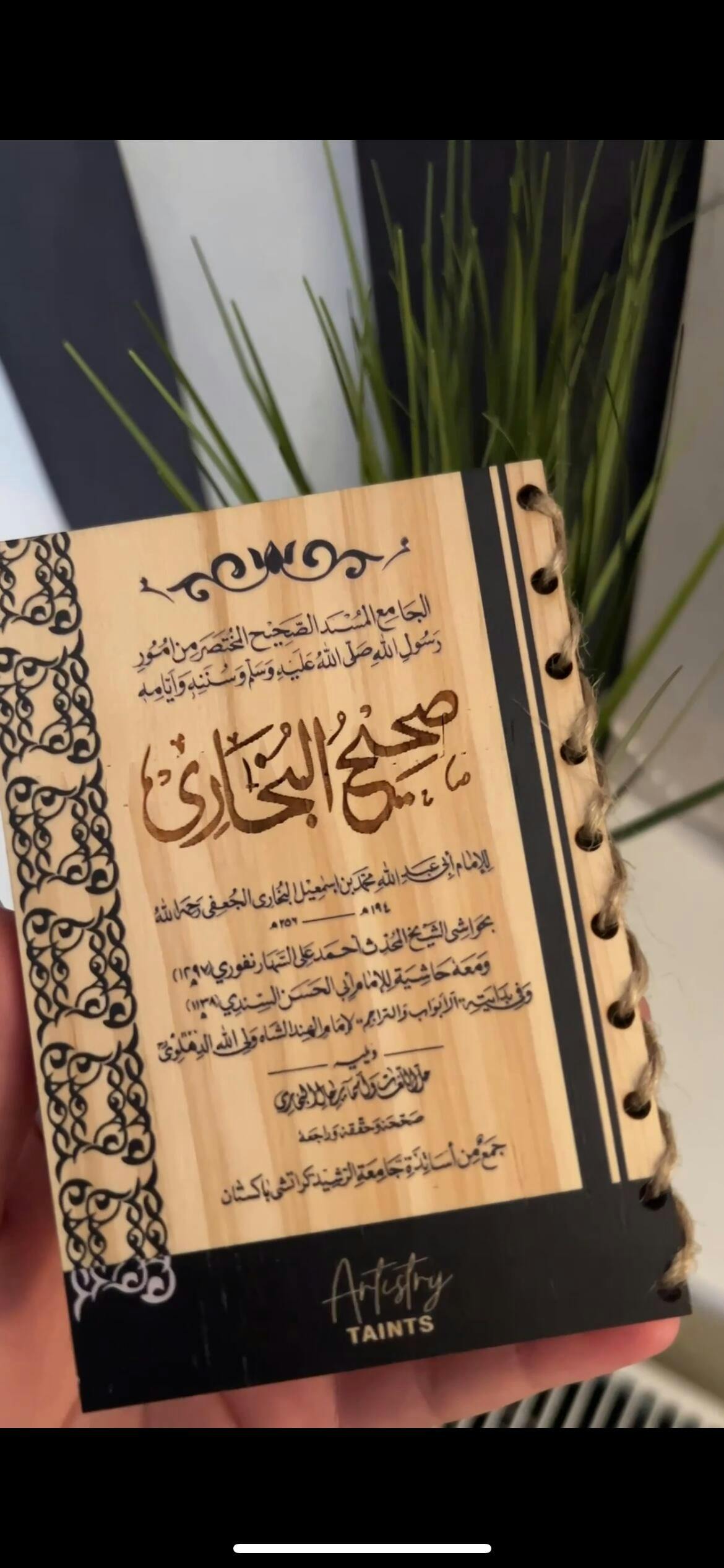 This 9 x 14cm wooden book matches the cover of Sahih Al-Bukhari. The final hadith is presented in the same layout as the original kitab, preserving its authenticity. A perfect keepsake for a meaningful gift